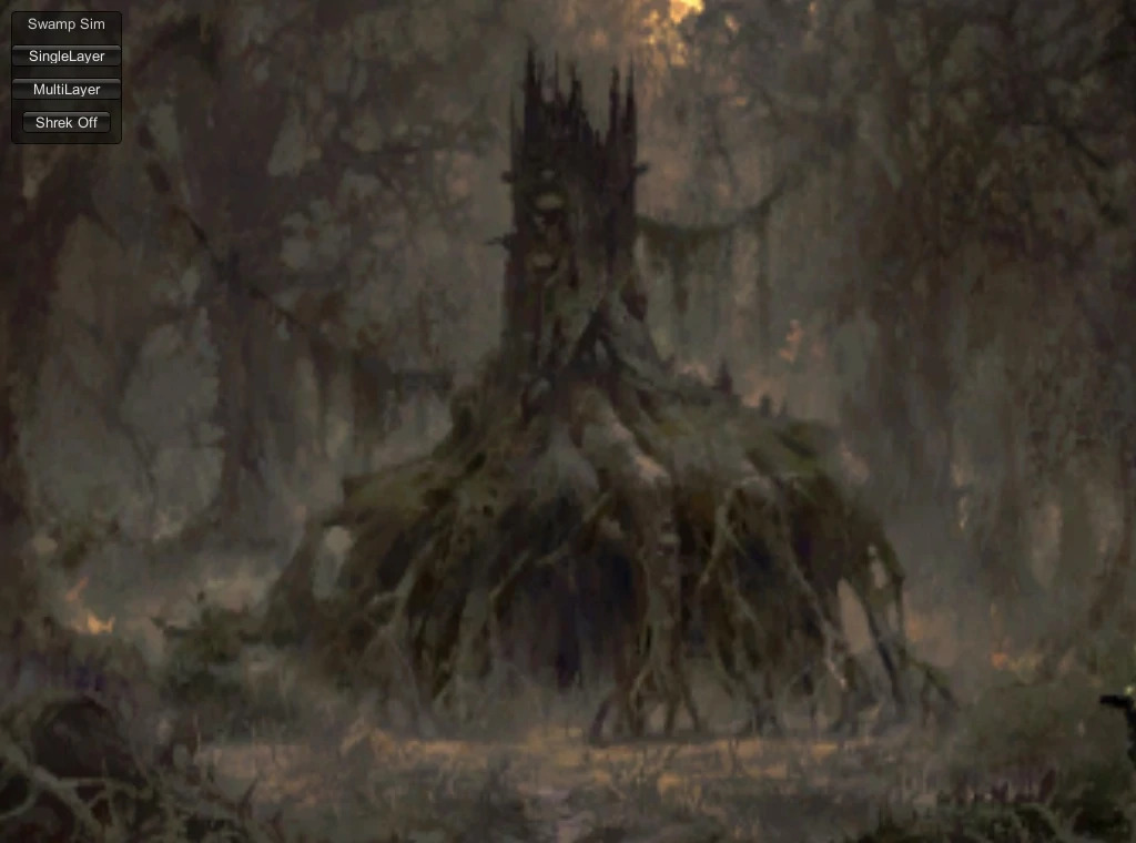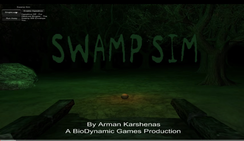 Old menu screen pre 1.2 version.The game was supposed to have a multiplayer mode but it was never completed and the picture of the swamp is very low res.